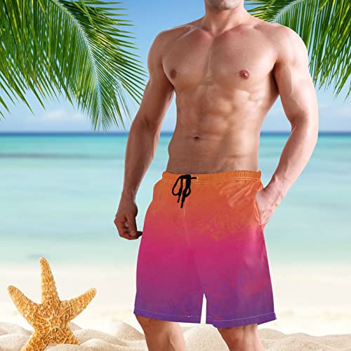 Watercolor Pink Orange Men's Beach Shorts Swim Trunks Quick Dry Swim Board shorts With Pockets L 6