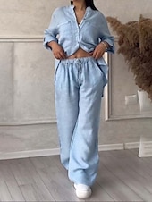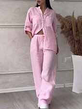 More information about Women's Active Shirt Blouse Pants Sets Long Sleeve Shirt Collar Solid Color Dubbele Rij Knopen Outdoor Weekend White Yellow Pink Summer Regular Fit