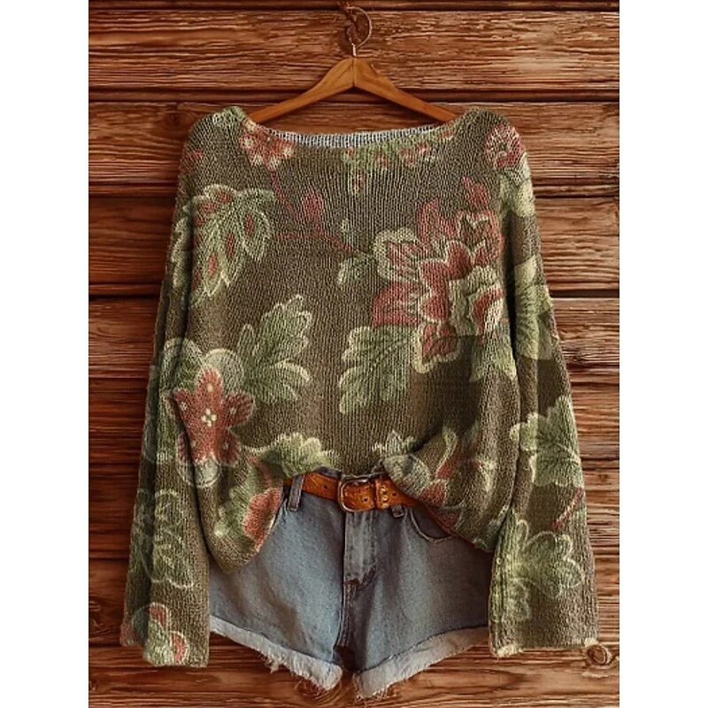 Women's Sweater Casual Floral Stylish Modern Long Sleeve Crew Neck Soft Regular Tops Daily Holiday Print Black Yellow Blue Brown Green Spring Fall Winter 7