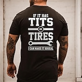 Mens Graphic Short Sleeve T-Shirt: 'If It Has Tits Or Tires I Can Make It Squeal' Crude Funny Mechanic Biker Lifestyle Humor