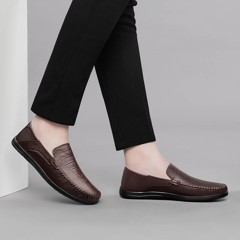HOT ! Loafers for Men Round Toe Crocodile Print Leather Dress Loafers Comfortable Flat Heel Flexible Party Prom Slip On