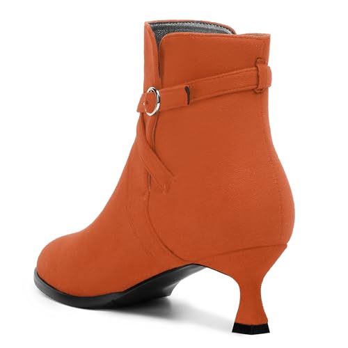 NUMALEO Womens Suede Buckle Ankle Strap Dress Round Toe Bridal Comfortable Kitten Low Heel Ankle High Boots 2 Inch 5
