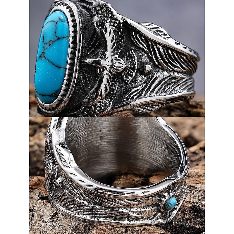Stainless Steel Turquoise Ring with Eagle Design  Vintage Western Style Ring for Men  Unique Statement Jewelry for Casual & Outdoor Wear 11