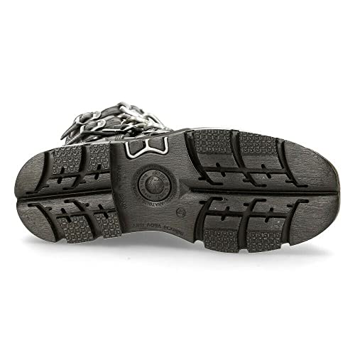 New Rock Men's 727-S1 Metallic Black Leather Spikes Gothic Mid Calf Punk Rock Boots 5