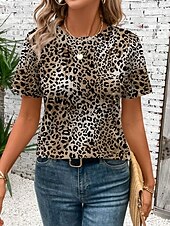 Women's T Shirt Graphic Leopard Vintage sophisticated Casual Short Sleeve Crew Neck Round Neck Regular Tops Daily Print Brown Summer