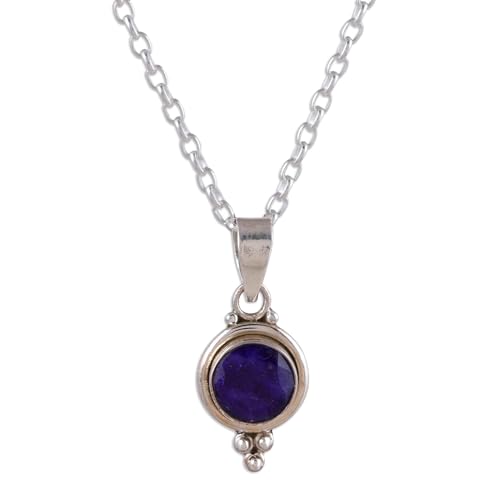 NOVICA Artisan Handmade Sapphire Pendant Necklace Indian Sterling Silver Gemstone 'Air Bubble in Blue'
