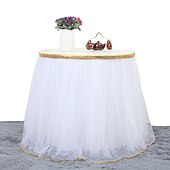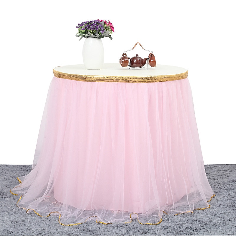 HOT ! Table Skirt 6ft for Round Retangle Table Adjustable Tulle Table Skirting for Birthday Baby Shower Graduation Wedding Anniversary Picnic Friends or Family Party Decoration-Pastel(6FT, Pink)