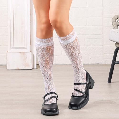 Knee High Fishnet Socks Mesh Lace Lolita Bowknot Lolita Lace Stocking for Women 2 Pairs 4