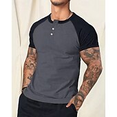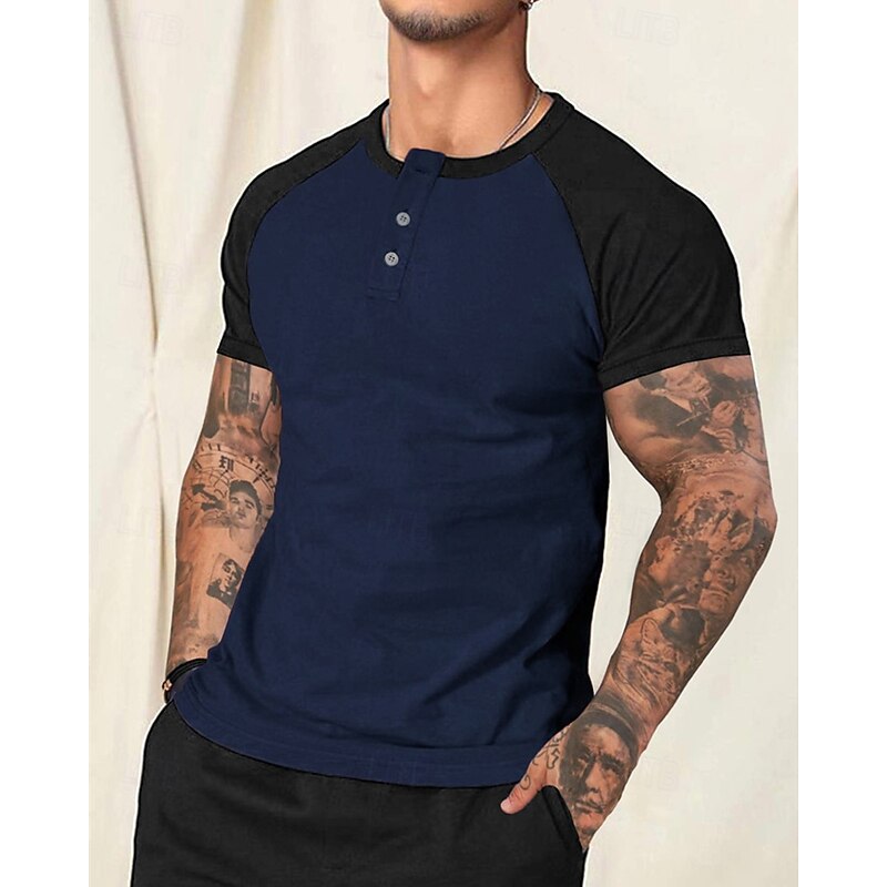 More information about Men's Button T Shirt T Shirt Henley Shirt Tee Short Sleeve Henley Spring & Summer Color Block Fashion Designer Basic Patchwork Buttons Vacation Street Going out White Red Navy Blue Top Tee for Men