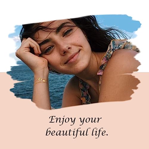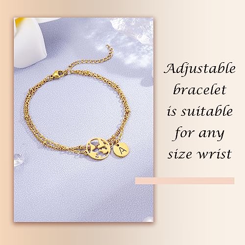 Initial Bracelets for Women, Dainty Gold Bracelets with Map Charm Adjustable Layered Initial Bracelet with Map for Travel Lover/Friend/Daughter/Sister Valentine Gifts for Her/Women