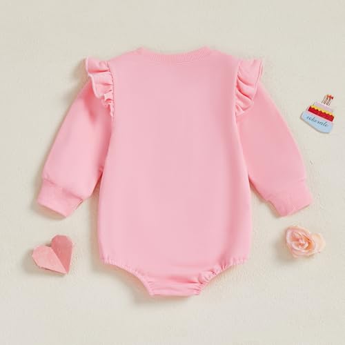 Newborn Baby Girl 1st Birthday Outfit Letter Cupcake Print Bubble Romper Long Sleeve Bodysuit Fall Winter Clothes 5