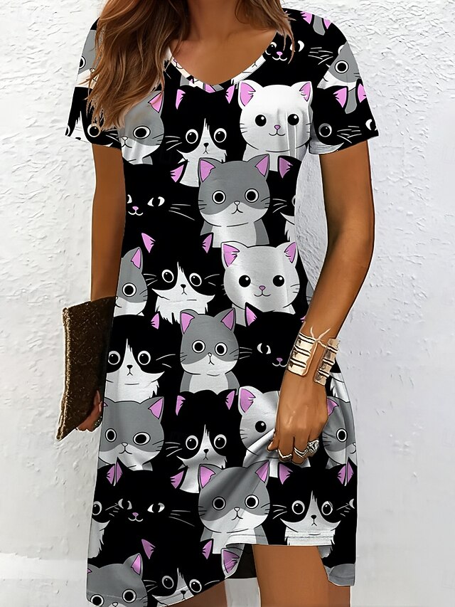 This Women's Mini Dress Casual Dress T Shirt Dress Tee Dress A Line Dress Summer Dress Vacation Casual Holiday Regular Fit Graphic Animal Cat Short Sleeve Crew Neck V Neck Black And White Yellow Pink Blue combines elegant design with practical functionality. Every detail has been carefully considered to ensure you get the supreme possible experience. The supreme construction means this product will serve you well for years to come.