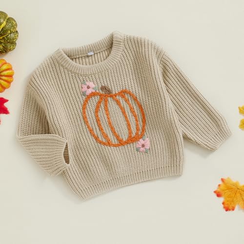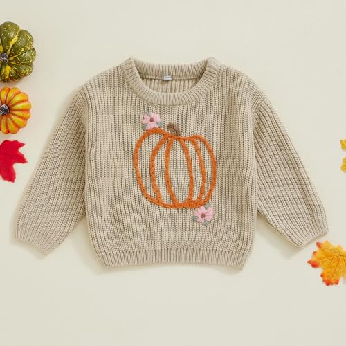 • Feature: Infant sweater: Pull-on closure, long sleeve, round neck, pumpkin flower embroidery, ribbed cuffs. Baby oversized sweaters, easy to put on and take off by themselves.