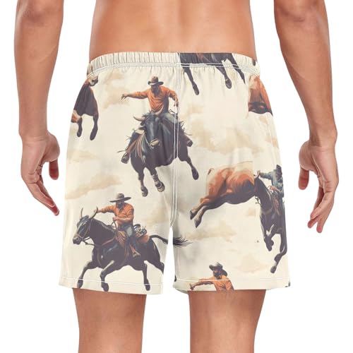 xigua Cowboys Rodeo Colorful Mens Swim Trunks with Liner, 5 inch Quick Dry Mens Boardshorts for Beach 5