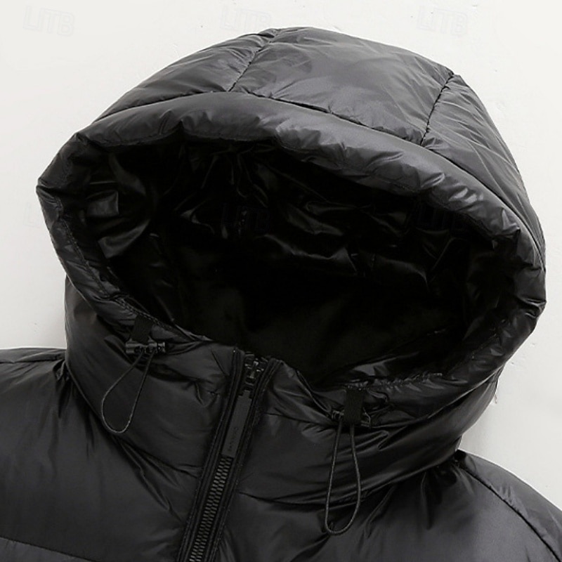 More information about Men's Winter Coat Puffer Jacket Padded Zipper Pocket Polyster Pocket Outdoor Long Fashion Casual Thermal Warm Windproof Winter Plain Black Puffer Jacket