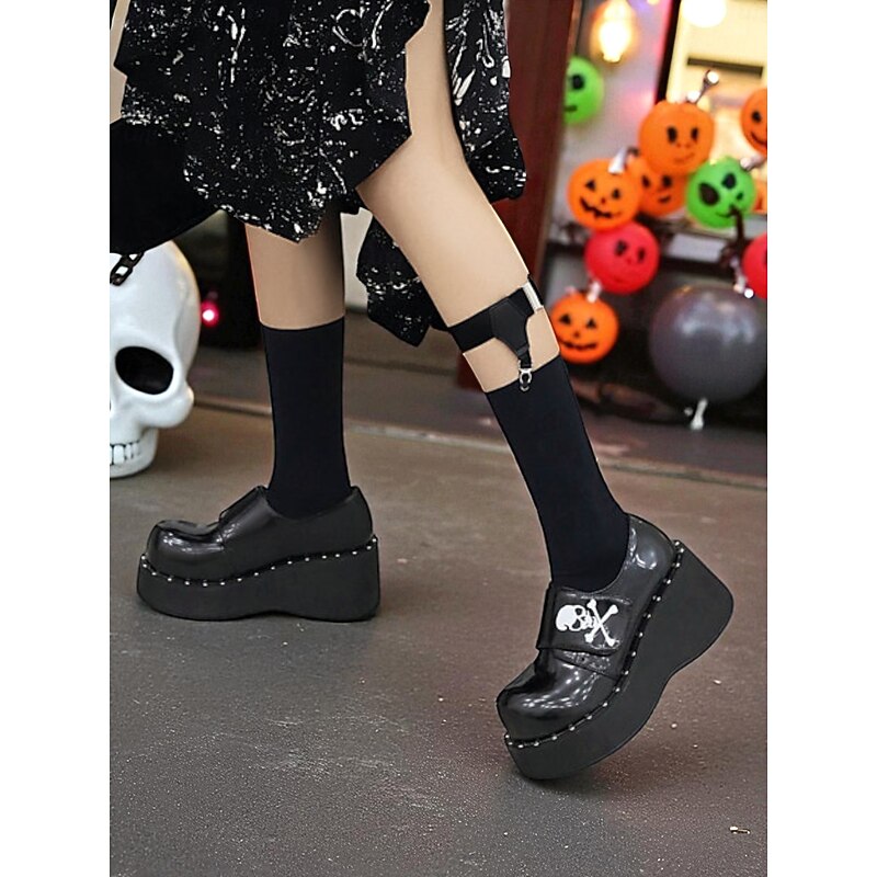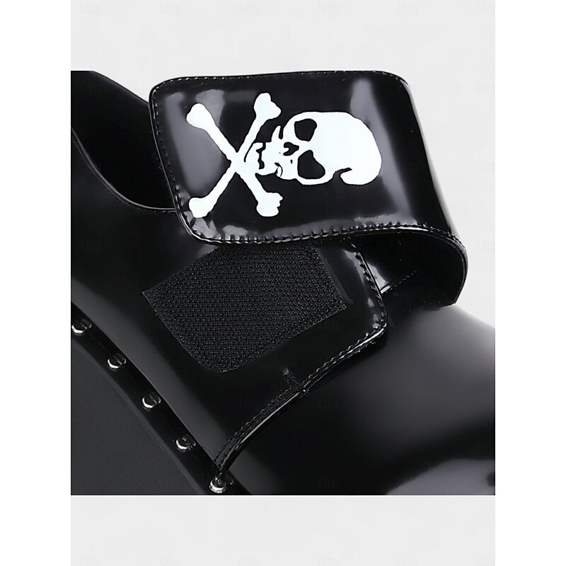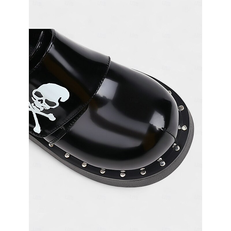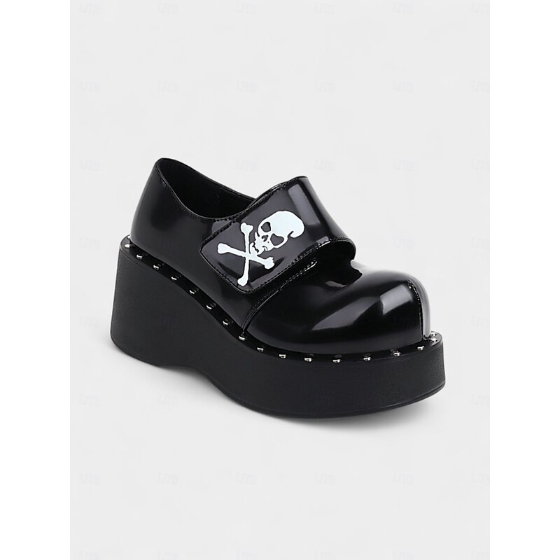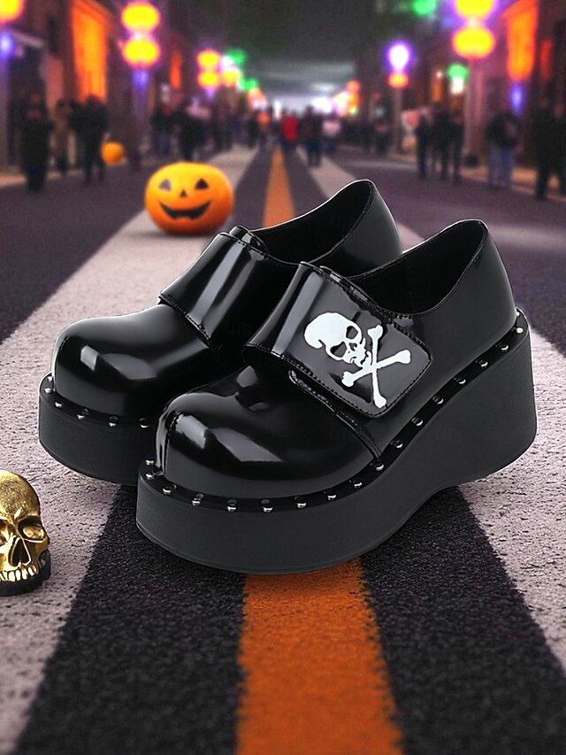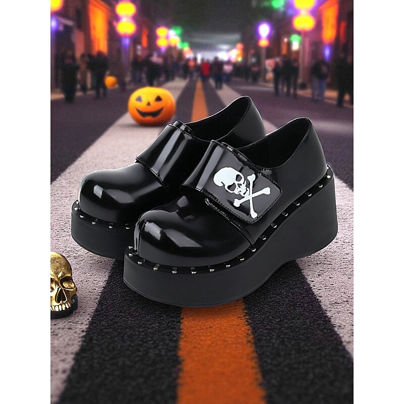$64.99 - Women's Black Halloween Skull Print Platform Loafers – Shiny Patent Faux Leather Goth Shoes for Night Parties and Streetwear Looks 2025. Shop for cheap Shoes For Women online? Buy at lightinthebox.com on sale today!