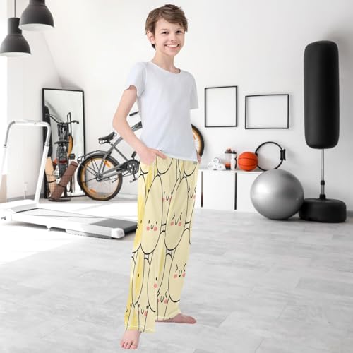 Boy's Pants Light Yellow Egg Cartoon Smile Jogger Pants Elastic Waist Long Bottoms Trousers with Pockets 6-14 Years 6