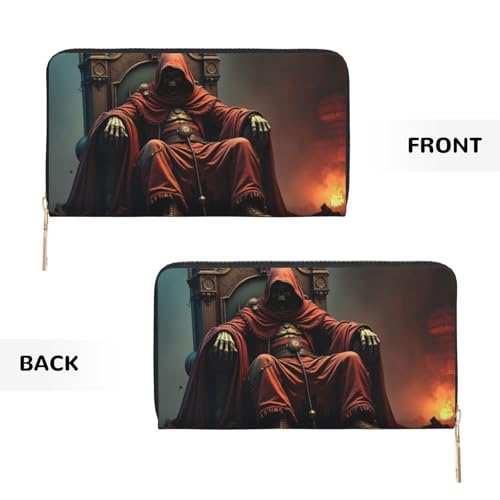 HOT ! Wallet Women - Gothic Red Skeleton King Print Leather Wallet for Women with Zipper, Cute Bifold Long Ladies Wallets
