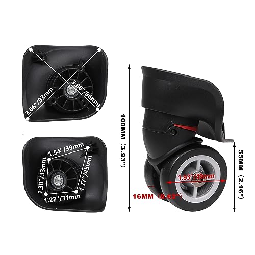 3Pcs Universal Swivel Wheel Right (Small) Suitcase Wheel (3R) 115W Series W042 Wheel Replacement Black 4