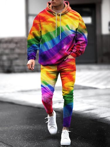 More information about Men LGBT Rainbow Gay Pride 3D Hoodie Joggers Sweatpants Set Drawstring Waistband 80s 90s Tracksuits 2 Piece Set