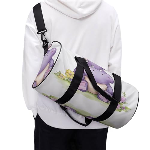 Cylindrical Gym Bag,Butterfly And Hippo Sports Gym Bag,Workout Bags,travel Weekender Bag,Duffle Travel Bag for Men Women 7