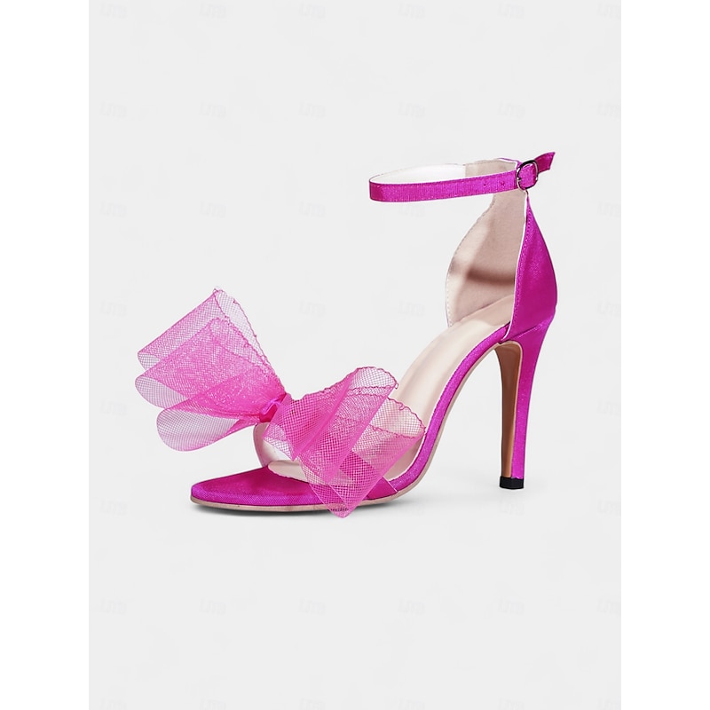 Women's popular Pink Bow High Heel Sandals - Elegant Stiletto Party Shoes with Ankle Strap for Nightlife and Club Outfits