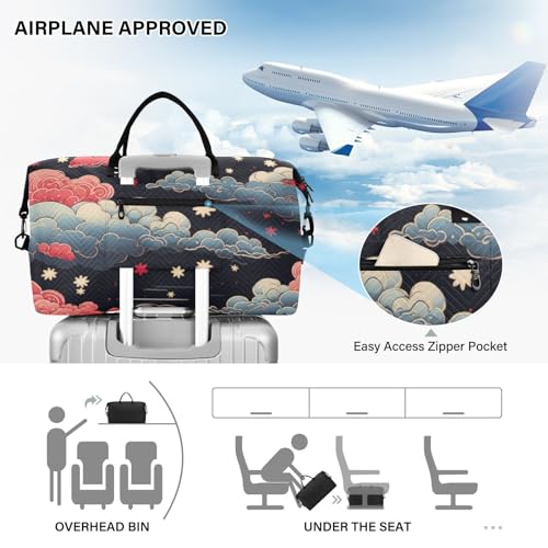 Large Travel Duffel Bag, Clouds Art Sports Tote Gym Bag, Shoulder Weekender Overnight Bag for Women Men, Carry On Luggage with Toiletry Bags 7