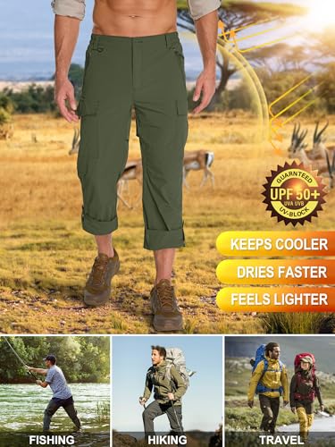 • Fishing pants for men: The capri features Roll up around the knee parts to keep cooling when hiking and make the pants hem freely so that more convenient for sports,