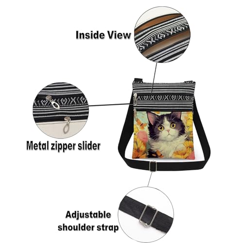 Cat Floral women Crossbody Bag Travel Adjustable Shoulder Strap Messenger Bag Daily Use Crossbody Purse Birthday Gift for Friend Cat Lover Holiday Present for Her or Him 7