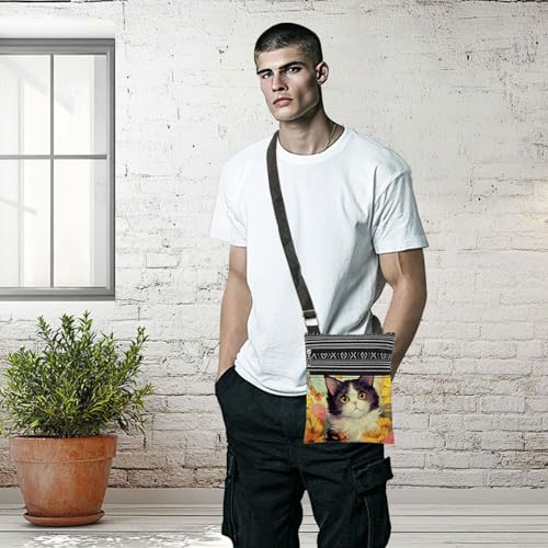 HOT ! Cat Floral women Crossbody Bag Travel Adjustable Shoulder Strap Messenger Bag Daily Use Crossbody Purse Birthday Gift for Friend Cat Lover Holiday Present for Her or Him