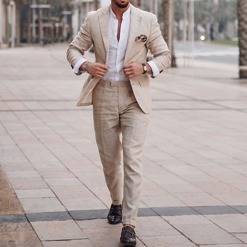 $112.99 - Men's Wedding Linen Linen Suits Notch Pink Dark Gray Solid Colored Tailored Fit 2 Piece Single Breasted One-button 2025. Shop for cheap Casual Suits online? Buy at lightinthebox.com on sale today!