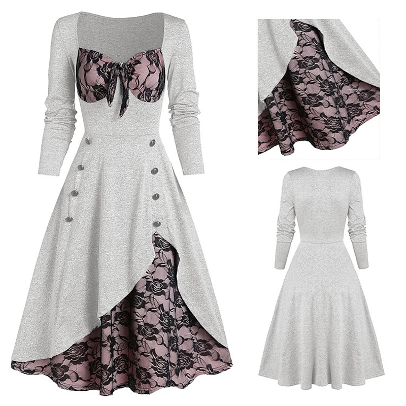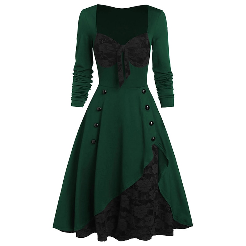 More information about Plus Size 1950s Vintage Inspired Cocktail Dress Fall Spring Dress Flare Dress Women's Adults' Costume Vintage Cosplay Party / Evening Masquerade Cocktail Party Long Sleeve Deep U A-Line