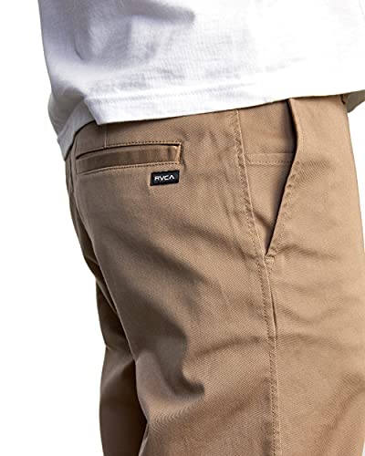 Fabric type: 68% Cotton, 30% Polyester, 2% ElastaneCare instructions: Machine WashOrigin: ImportedClosure type: ButtonStraight Fit. Zipper fly with RVCA shank button closure.Inseam: 32in.Bottom Leg Opening: 15.5in.Front slash pockets with back welt pockets.Front Coin pocket. superb for everyday use. superior materials and excellent craftsmanship ensure long-lasting durability.