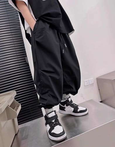 Boys Baggy Cargo Pants Casual Loose Fit Parachute Pant Fashion Harem Joggers Sweatpants with Pockets 5-6 Years 16 Black 1