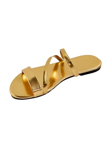 • Metallic flat sandals for women, strappy, pu leather, open toe, summer slides sandals
