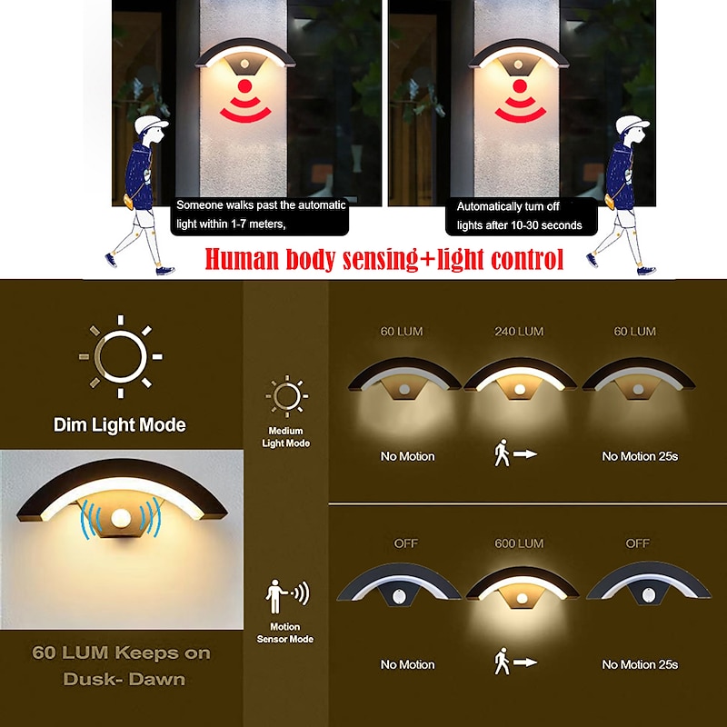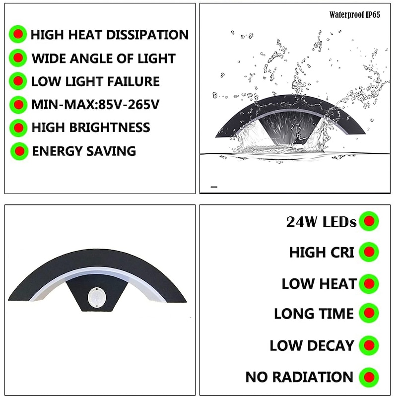 LED Outdoor Wall Lamp 24W with Motion Sensor IP65 Waterproof Light Control Suitable for Bathroom Garage Fence Deck Courtyard AC85-265V 11