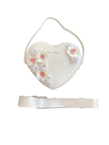 More information about Betsey Johnson Luv Betsey XO HEART Crystal Jeweled White Multi Colored 3D Flowers Garden Party, Wedding, Ivory Vanilla Faux Leather Small Top Handle Adjustable Detachable Web Strap Crossbody