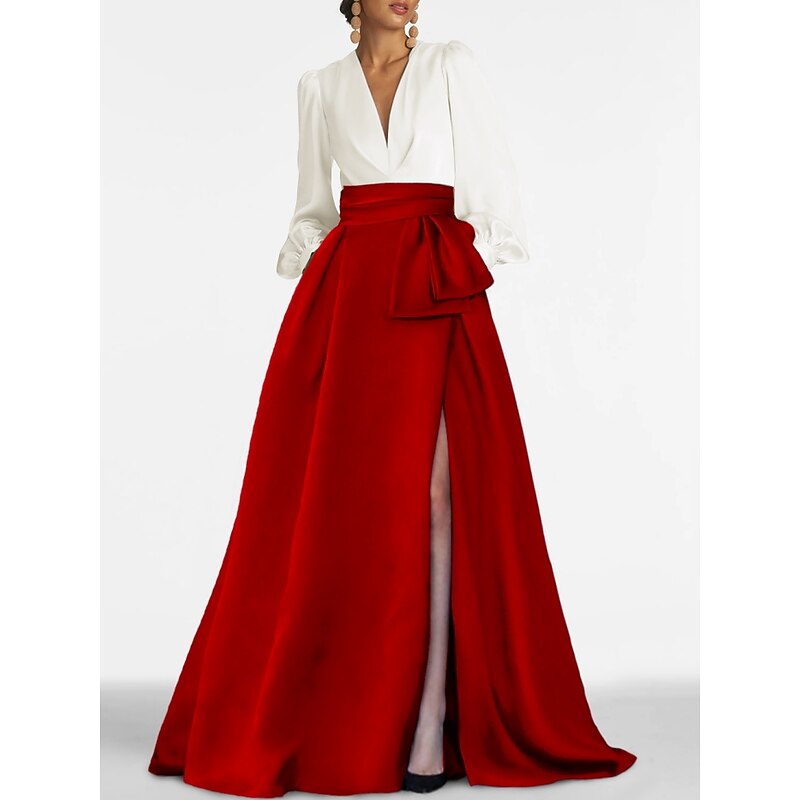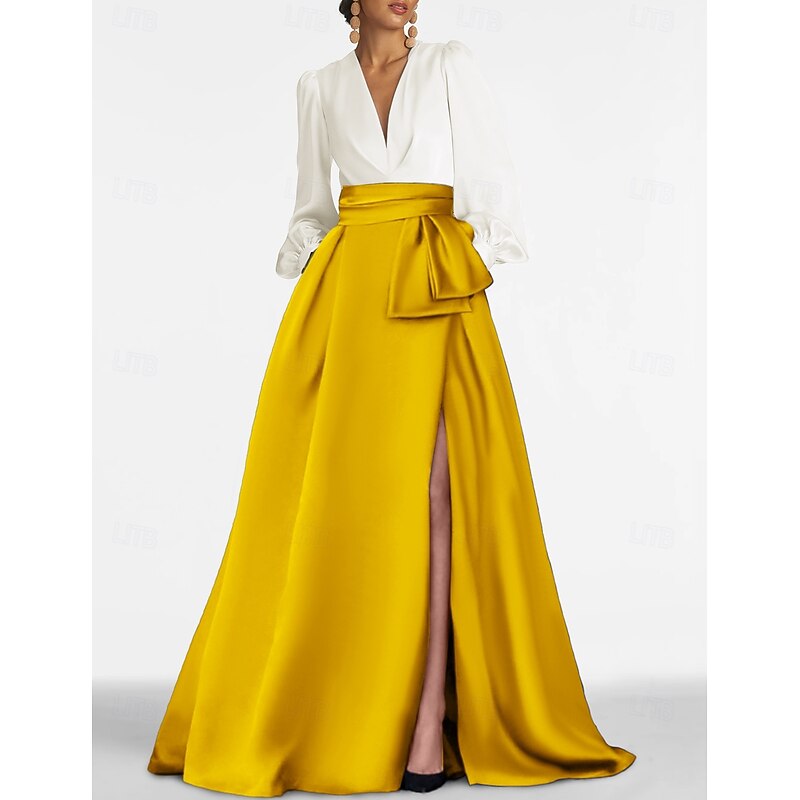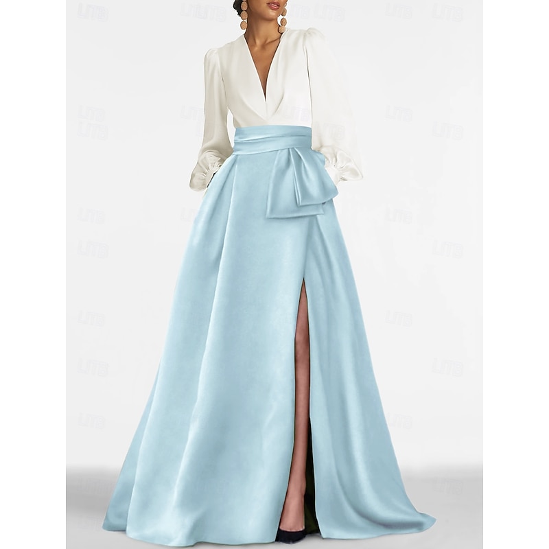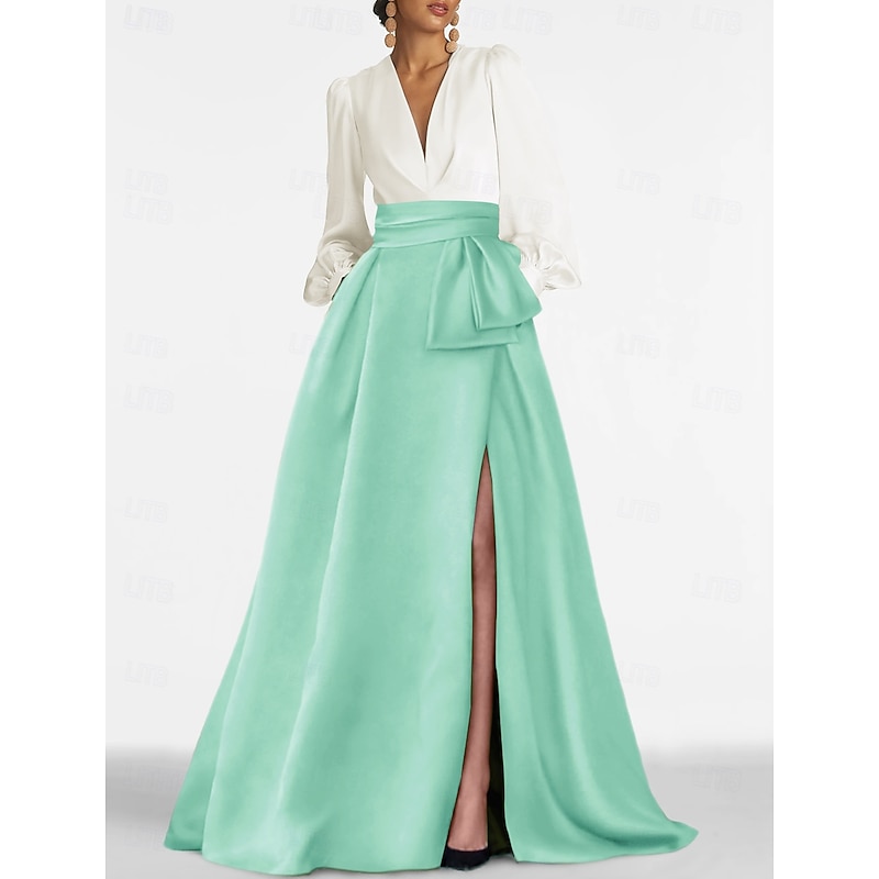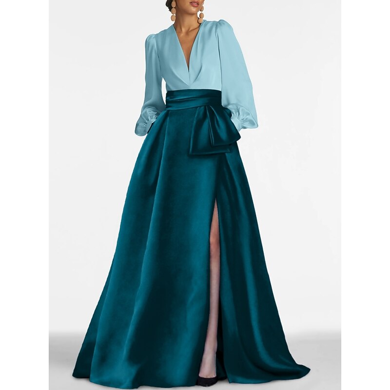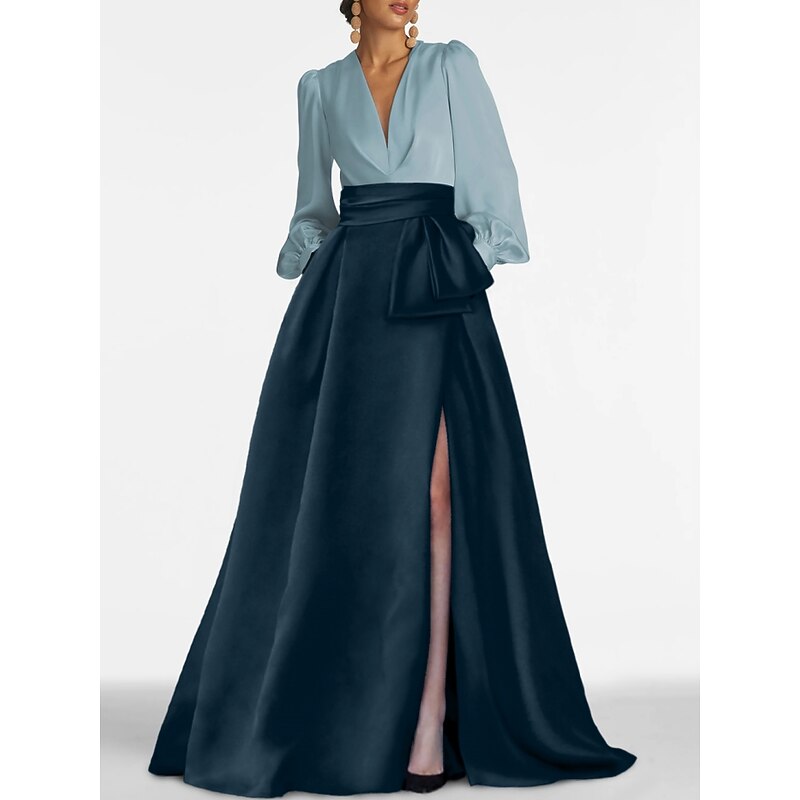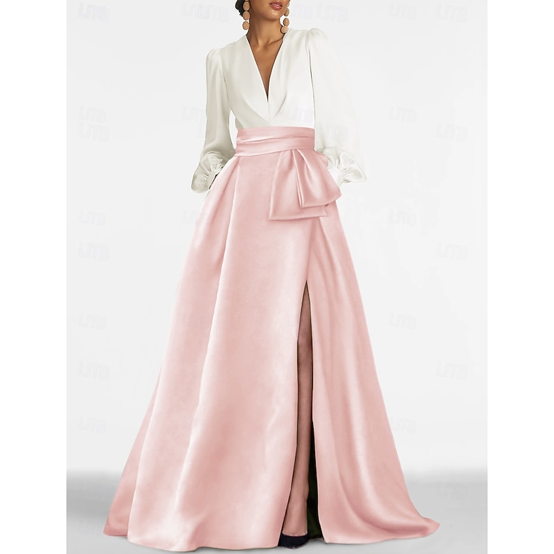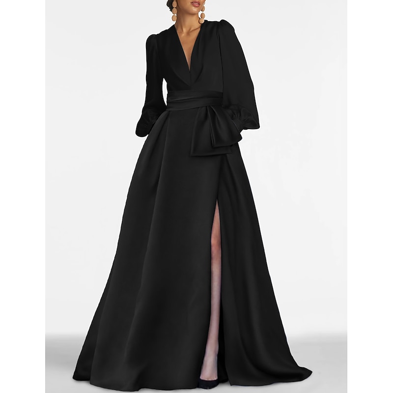 This A-Line Evening Gown Elegant Dress Formal Wedding Guest Sweep / Brush Train Long Sleeve V Neck Satin with Pleats Slit combines elegant design with practical functionality. Every detail has been carefully considered to ensure you get the supreme possible experience. The supreme construction means this product will serve you well for years to come.