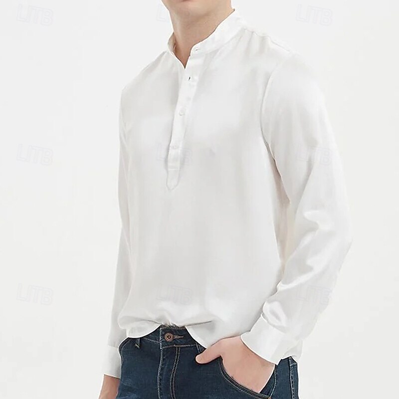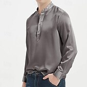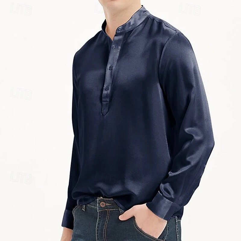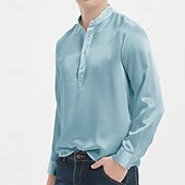 More information about Men's Shirt Silk Like Satin Shirt Casual Shirt Pullover Plain Formal Wedding Black White Navy Blue Sky Blue Long Sleeve Henley Spring & Fall All Seasons Clothing Apparel