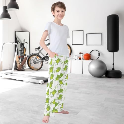 Boy's Pants Cartoon Cute Frog Animal Jogger Pants Elastic Waist Long Bottoms Trousers with Pockets 6-14 Years 6