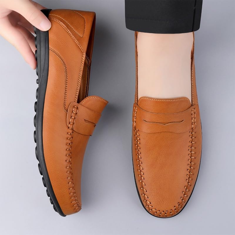 Why Choose Loafers for Men Round Toe Vegan Leather Penny Loafers Lightweight Flat Heel Flexible Walking Fashion Slip-on?