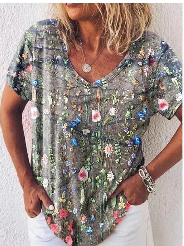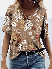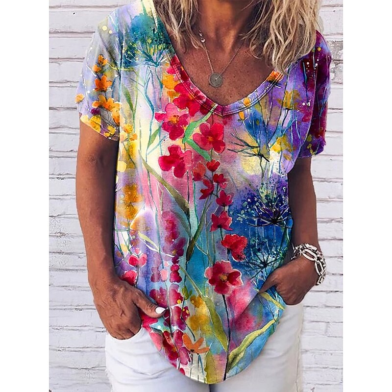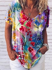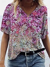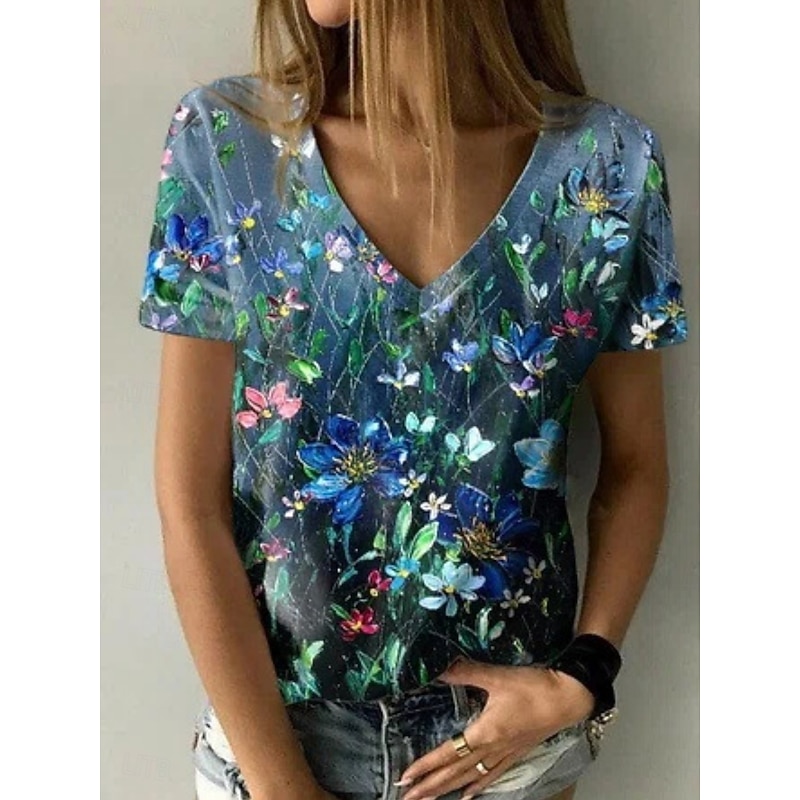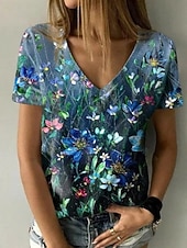 More information about Women's T Shirt Floral Fashion Modern Long Sleeve V Neck Regular Tops Daily Print Royal Blue Blue Dusty Blue Purple Fuchsia Summer