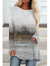 More information about Women's Plus Size T Shirt Tunic Shirts Graphic Vintage Tunic Basic Long Sleeve Round Neck Long Tops Daily Weekend Print Brown Gray Fall & Winter