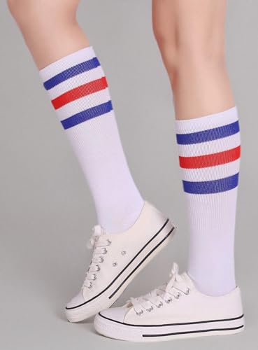 Pareberry Classic Triple Stripes Soft Cotton On the Calf Retro White Tube Socks 5