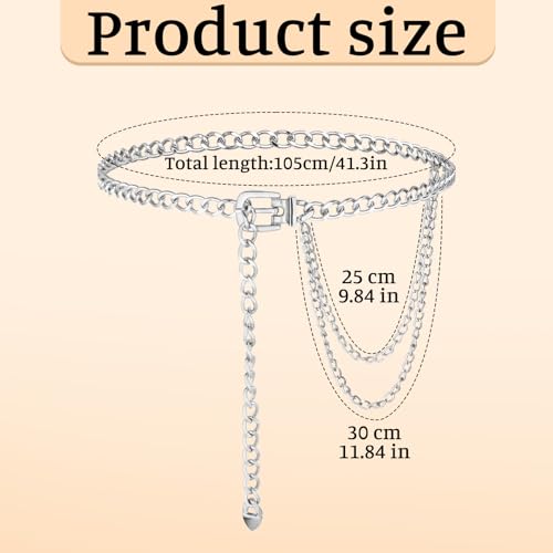 Silver Belt for Women Waist Chain Belts Adjustable Chains Belts Punk Waist Chain Metal Belt for Dresses Jeans Skirts Trousers 4