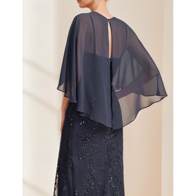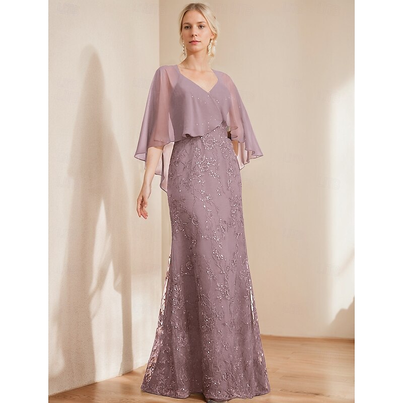 More information about A-Line Dress Mother of the Bride Dress Elegant Sparkle & Shine V Neck Floor Length Chiffon Lace Short Sleeve with Lace Sequin