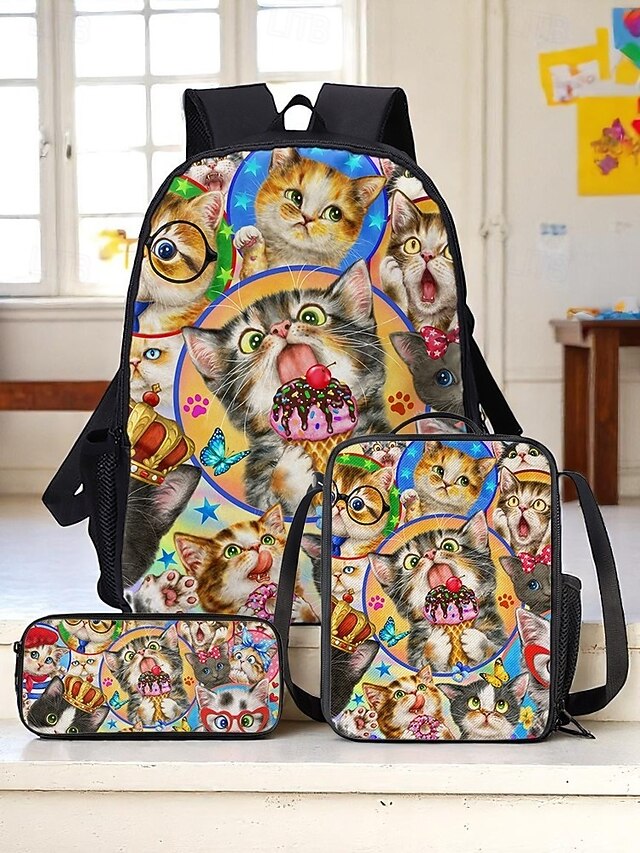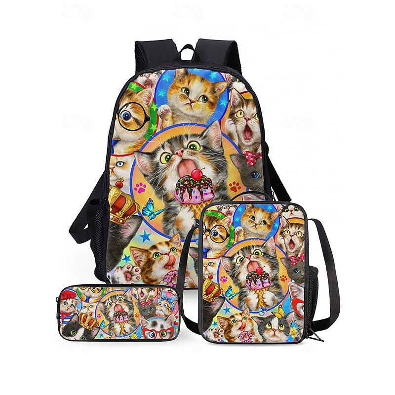 $32.99 - Children's 3-Piece Cat Print Backpack Set with Lunch Bag and Pencil Case – Cute Cartoon Style, Durable and Lightweight, Perfect for Girls' School, Travel and Daily Use Kayomi Harai 2025. Shop for cheap Kids & Teen Backpacks online? Buy at lightinthebox.com on sale today!