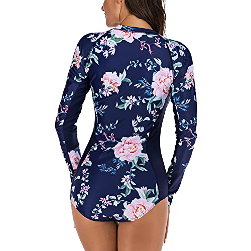 Lu's Chic Women's Rash Guard Zip Wetsuit Long Torso Swimsuit Surf Swimwear One Piece Sleeveless 3