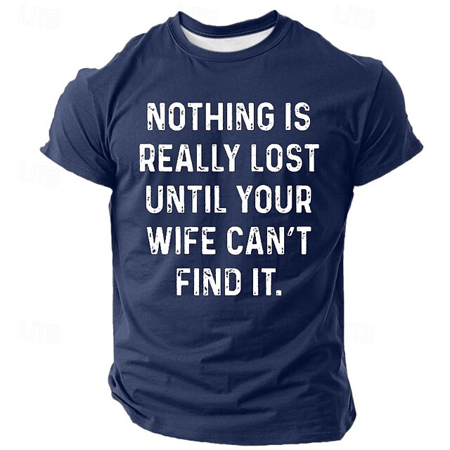 Mens Funny Graphic T-shirt "Nothing Is Really Lost Until Your Wife Can't Find It" Family Relationship Humor Short Sleeve Tee 9