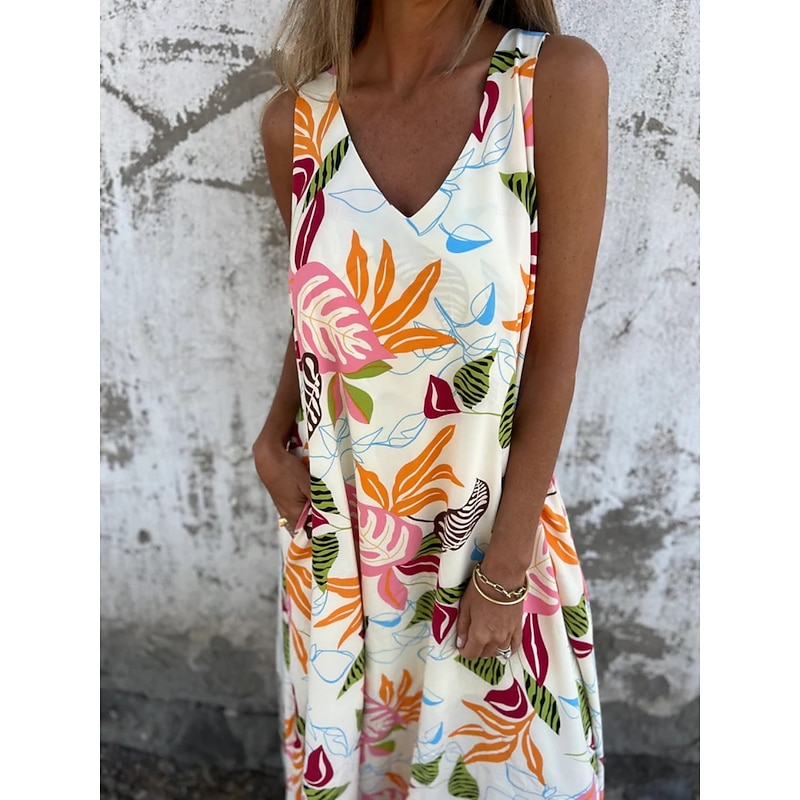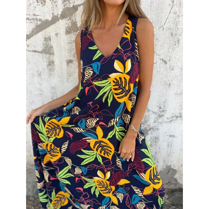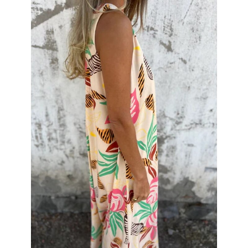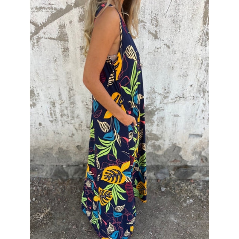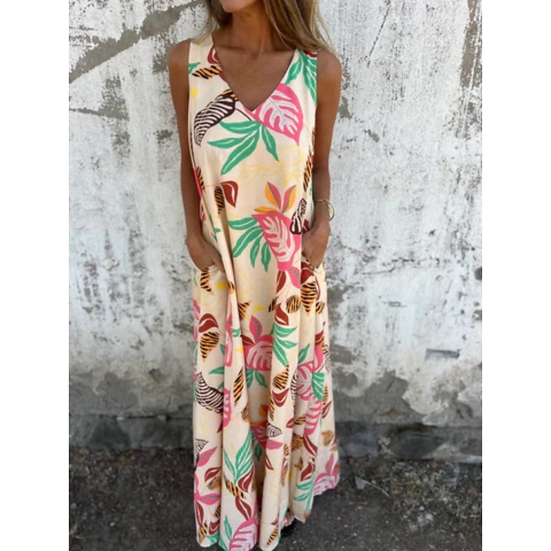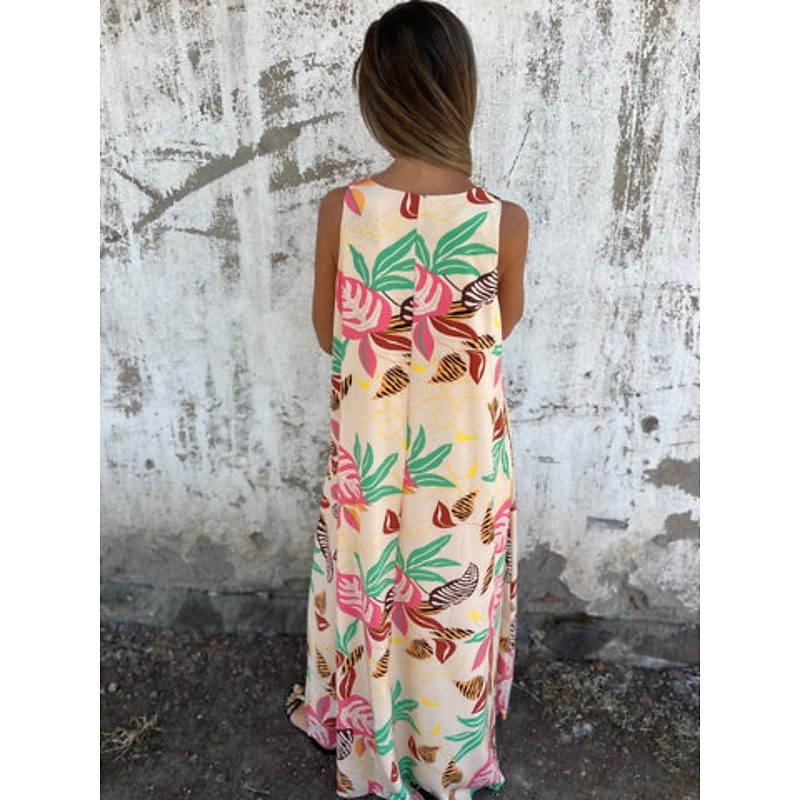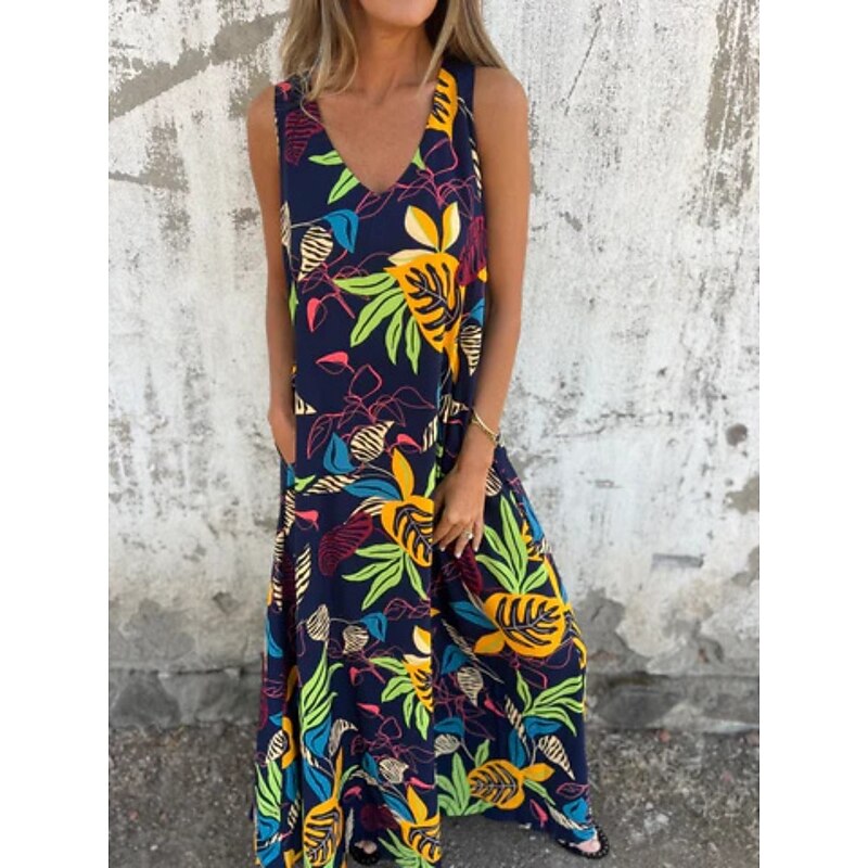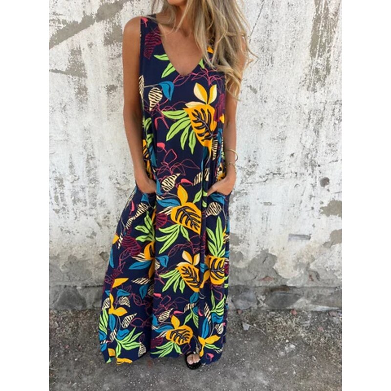 More information about Women's Maxi Dress A Line Dress Slip Dress Vacation Casual Boho Outdoor Going out Regular Fit Floral Sleeveless V Neck Blue Apricot Beige Summer